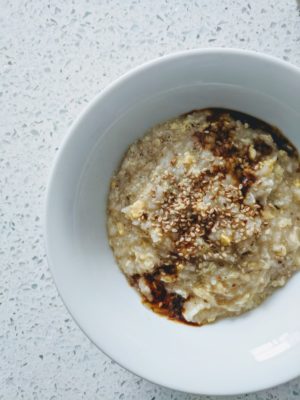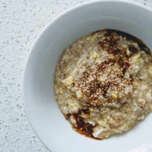 Heather Park has a unique take on a classic Congee, except with oatmeal, combining oatmeal porridge with kombu powder for flavor + umami, and she adds an egg in last for protein, along with a splash of soy sauce. If a sweet breakfast isn’t your thing, check out her recipe below and tweak as needed to make the perfect pre-long run meal.